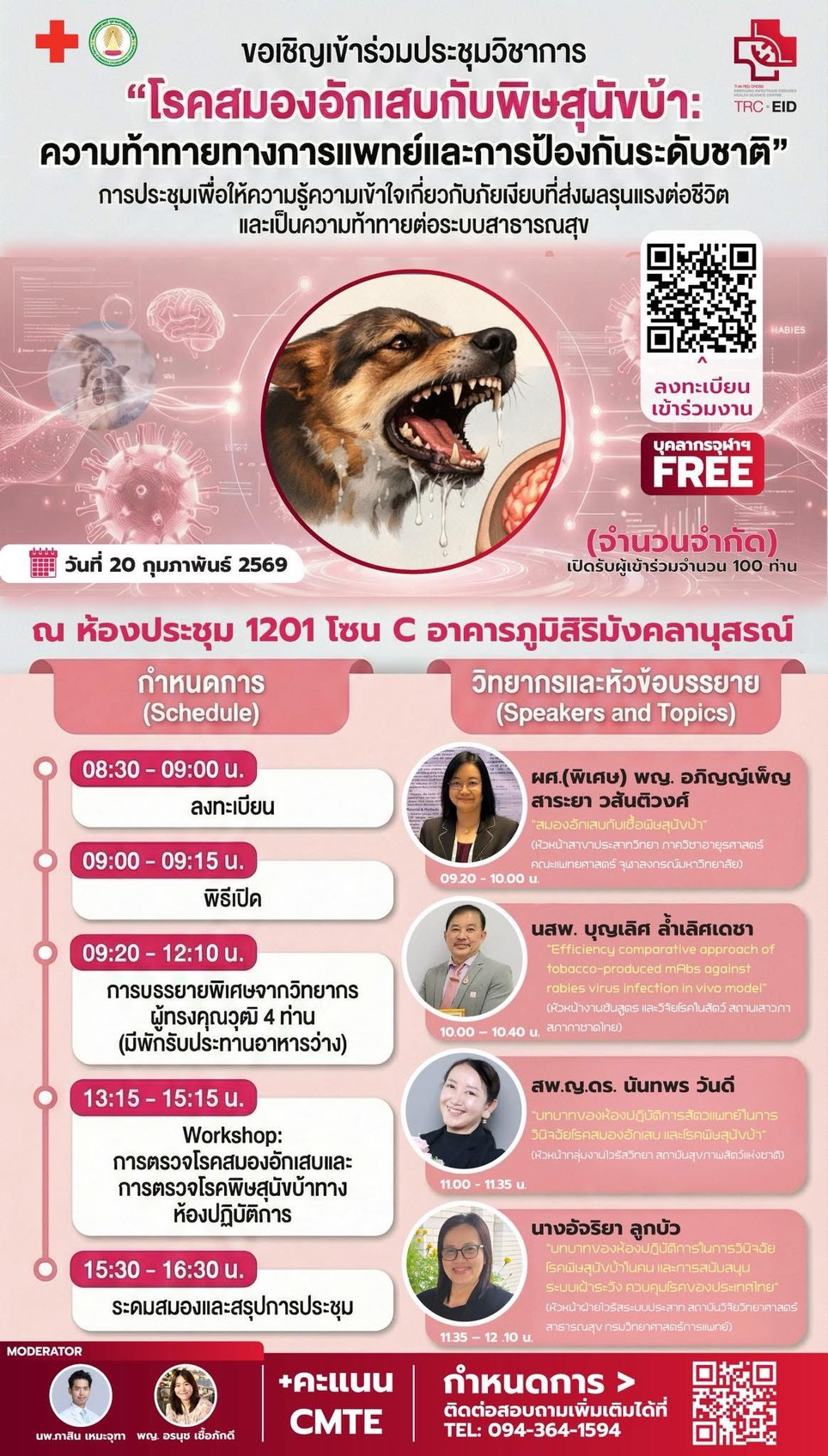 ขอเชิญแพทย์ บุคลากรทางการแพทย์ นักวิชาการ นักศึกษา และผู้สนใจ เข้าร่วม การประชุมวิชาการประจำปี เรื่อง “โรคสมองอักเสบกับพิษสุนัขบ้า”