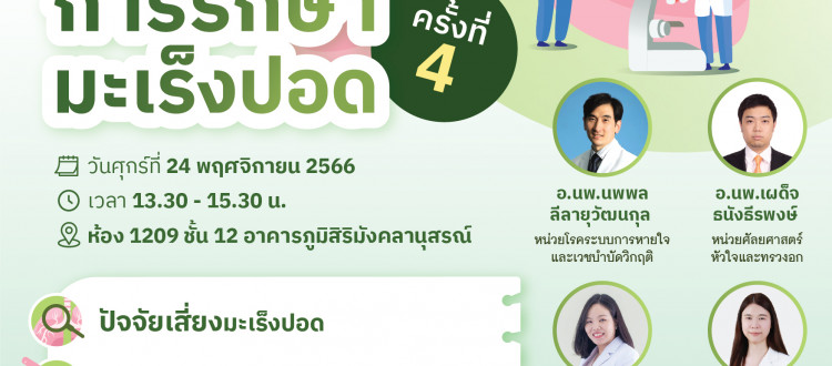 📣ศูนย์ความเป็นเลิศทางการแพทย์โรคมะเร็งครบวงจร รพ.จุฬาลงกรณ์ ขอเชิญร่วมงาน “รู้จักและเข้าใจการรักษามะเร็งปอด ครั้งที่ 4”