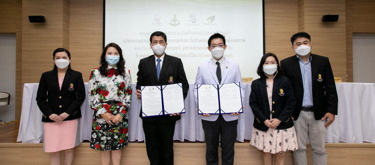 งานแถลงข่าวความร่วมมือด้านการวิจัยและพัฒนานวัตกรรมสารสกัดอินนูลินจากแก่นตะวันสำหรับผลิตภัณฑ์เพื่อสุขภาพ ระหว่าง คณะแพทยศาสตร์ จุฬาลงกรณ์มหาวิทยาลัย กับ โรงพยาบาลผู้สูงอายุเฌ้อสเซอรี่โฮม (Chersery Home)