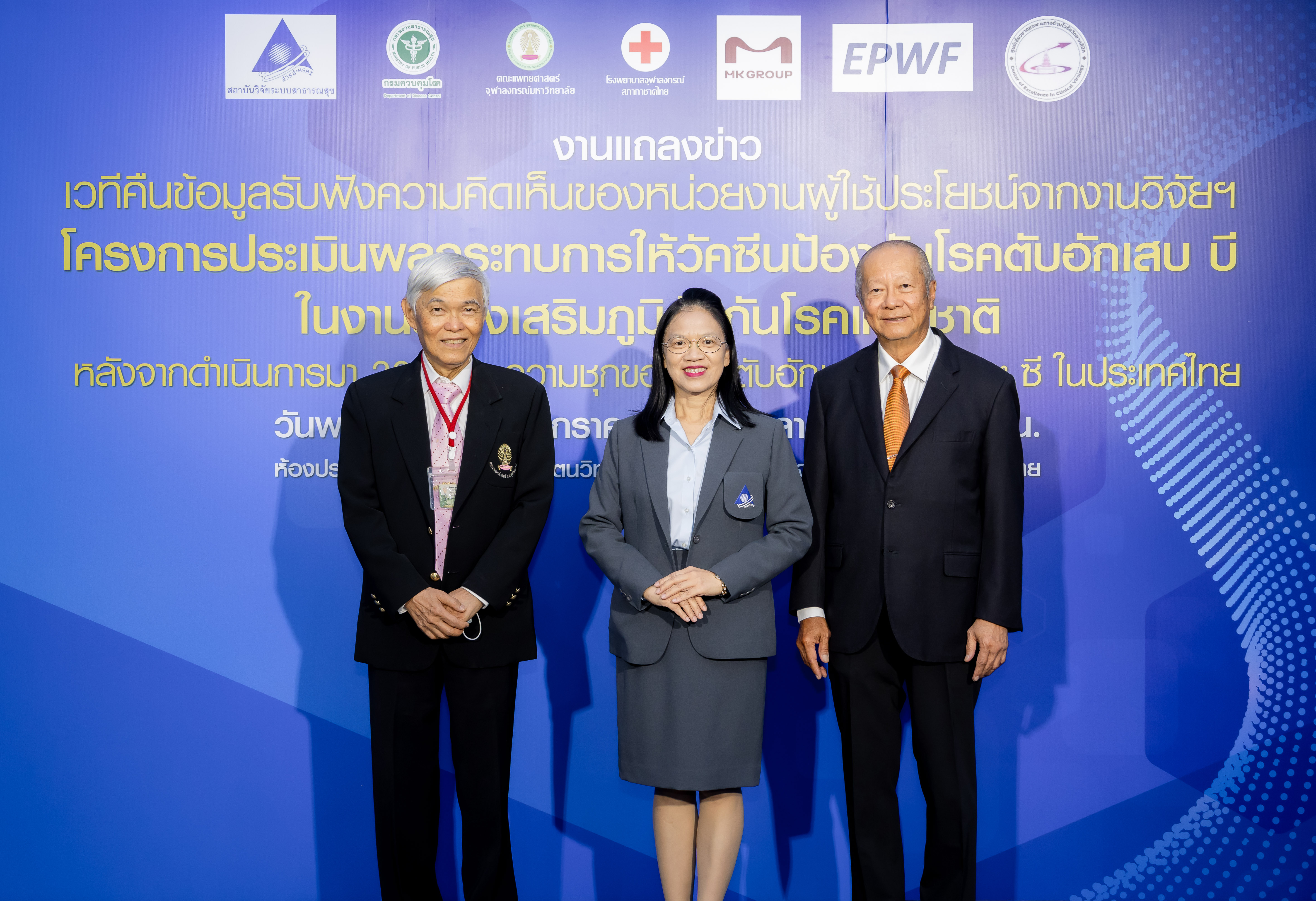 งานแถลงข่าวเวทีคืนข้อมูลรับฟังความคิดเห็นของหน่วยงานผู้ใช้ประโยชน์จากงานวิจัยฯ โครงการประเมินผลกระทบการให้วัคซีนป้องกันโรคตับอักเสบ บี ในงานสร้างเสริมภูมิคุ้มกันโรคแห่งชาติ หลังจากดำเนินการมา 30 ปี และความชุกของโรคตับอักเสบ เอ บี และ ซี ในประเทศไทย