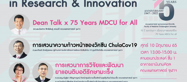 – Dean Talk x 75 Years MDCU for ALL รศ.นพ.ฉันชาย สิทธิพันธุ์ คณบดี คณะแพทยศาสตร์ จุฬาฯ