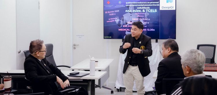 จุฬาลงกรณ์มหาวิทยาลัย ร่วมกับศูนย์ส่องกล้องทางเดินอาหาร โรงพยาบาลจุฬาลงกรณ์ สภากาชาดไทย จัดการประชุมเพื่อนำเสนอผลงานนวัตกรรมทางการแพทย์ต่อสำนักงานหลักประกันสุขภาพแห่งชาติ (สปสช.) เมื่อวันจันทร์ที่ 22 ธันวาคม 2568 ณ ห้องประชุมศูนย์ส่องกล้องทางเดินอาหาร อาคารภูมิสิริมังคลานุสรณ์ ชั้น 10 โซน A โรงพยาบาลจุฬาลงกรณ์ สภากาชาดไทย