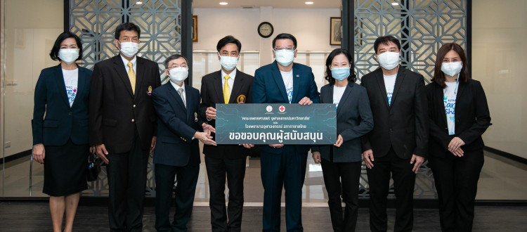 ศ.นพ.สุทธิพงศ์ วัชรสินธุ คณบดี คณะแพทยศาสตร์ จุฬาลงกรณ์มหาวิทยาลัย พร้อมด้วย ศ.นพ.เกียรติ รักษ์รุ่งธรรม ผู้อำนวยการบริหารโครงการพัฒนาวัคซีนโควิด-19 ศูนย์วิจัยวัคซีน คณะแพทยศาสตร์ จุฬาลงกรณ์มหาวิทยาลัย และรศ.นพ.ฉันชาย สิทธิพันธุ์ รองคณบดีฝ่ายวางแผนและพัฒนา คณะแพทยศาสตร์ จุฬาลงกรณ์มหาวิทยาลัย รับมอบเงิน จำนวน 1,000,000 บาท (หนึ่งล้านบาทถ้วน) จาก นายเจริญ ผู้สัมฤทธิ์เลิศ ประธานเจ้าหน้าที่บริหาร บริษัทเคพีเอ็มจี ประเทศไทย พม่าและลาว พร้อมด้วย นางมัญชุภา สิงห์สุขสวัสดิ์ ประธานเจ้าหน้าที่พัฒนาศักยภาพบุคลากร น.ส.นิตยา เชษฐโชติรส กรรมการบริหารและหุ้นส่วน สอบบัญชีอาวุโส นายไวโรจน์ จินดามณีพิทักษ์ กรรมการบริหารและหุ้นส่วน สอบบัญชีอาวุโส และนางสิตะกาญจน์ อนันตศิลป์ ผู้ช่วยผู้อำนวยการฝ่ายกิจการองค์กร และความรับผิดชอบต่อสังคม เพื่อสนับสนุนกองทุนการวิจัยและพัฒนาวัคซีน คณะแพทยศาสตร์ จุฬาลงกรณ์มหาวิทยาลัย