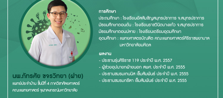 นพ.ภัทรศัย ขจรวิทยา (ฝาย) แพทย์ประจำบ้าน ชั้นปีที่ 4 ภาควิชาศัลยศาสตร์ คณะแพทยศาสตร์ จุฬาลงกรณ์มหาวิทยาลัย