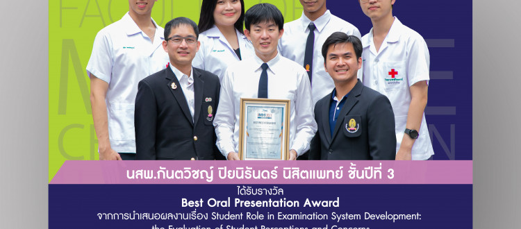 27 ธ.ค. 2023 นสพ.กันตวิชญ์ ปียนิรันดร์ นิสิตแพทย์ ชั้นปีที่ 3 ได้รับรางวัล Best Oral Presentation Award (เกียรติภูมิแพทย์จุฬาฯ) /Tags#mdcu, chula, chulalongkorn, medicine, คณะแพทยศาสตร์จุฬาลงกรณ์มหาวิทยาลัย, คณะแพทยศาสตร์จุฬาฯ, คณะแพทย์จุฬาฯ, เกียรติภูมิแพทย์จุฬาฯ, แพทย์จุฬาฯ กลับไปหน้าข่าวประชาสัมพันธ์