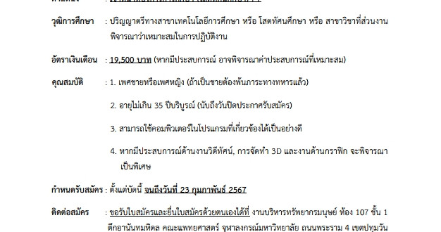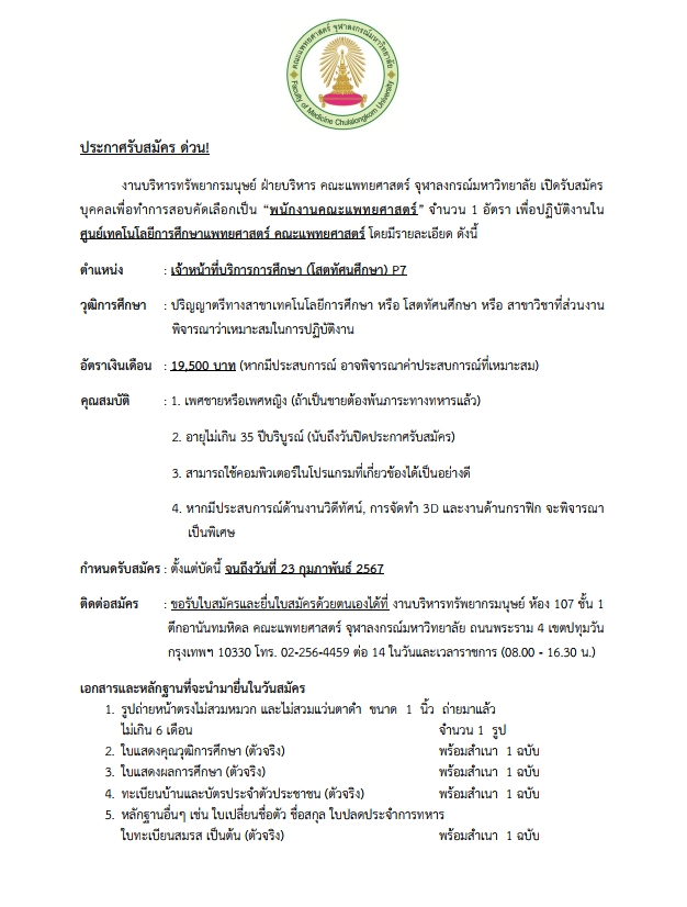 20 ก.พ. 2024 ประกาศรับสมัครงาน (ด่วนที่สุด!) พนักงานคณะแพทยศาสตร์” จำนวน 1 อัตรา ศูนย์เทคโนโลยีการศึกษาแพทยศาสตร์ ตำแหน่ง: เจ้าหน้าที่บริการการศึกษา (โสตทัศนศึกษา) P7 /Tags#mdcu, chula, chulalongkorn, JOB, medicine, คณะแพทยศาสตร์จุฬาลงกรณ์มหาวิทยาลัย, คณะแพทยศาสตร์จุฬาฯ, คณะแพทย์จุฬาฯ, สมัครงาน, แพทย์จุฬาฯ รับสมัครพนักงานคณะ หน่วยโสต 01 รับสมัครพนักงานคณะ หน่วยโสต 02 กลับไปหน้าข่าวประชาสัมพันธ์