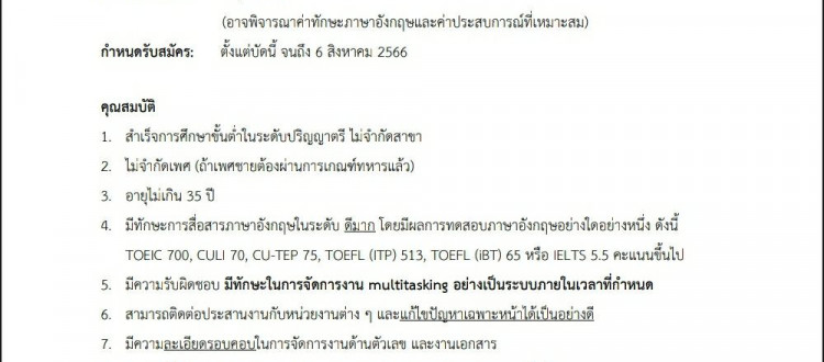 อัตราเงินเดือน: 19,500 บาท (อาจพิจารณาค่าทักษะภาษาอังกฤษ และค่าประสบการณ์ตามความเหมาะสม)