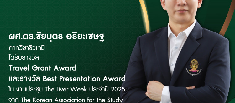 24 ก.ค. 2025 ผศ.ดร.ชัยบุตร อริยะเชษฐ ภาควิชาชีวเคมี ได้รับรางวัล Travel Grant Award และรางวัล Best Presentation Award (เกียรติภูมิแพทย์จุฬาฯ) /Tags#mdcu, chula, chulalongkorn, medicine, คณะแพทยศาสตร์จุฬาลงกรณ์มหาวิทยาลัย, คณะแพทยศาสตร์จุฬาฯ, คณะแพทย์จุฬาฯ, เกียรติภูมิแพทย์จุฬาฯ, แพทย์จุฬาฯ กลับไปหน้าข่าวประชาสัมพันธ์