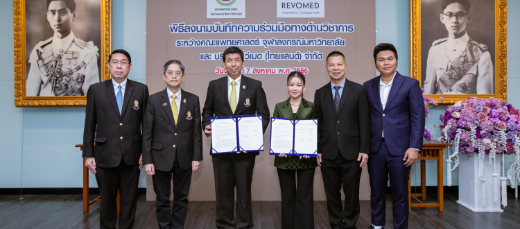 คณะแพทย์ศาสตร์ จุฬาลงกรณ์มหาวิทยาลัย และ บริษัท รีโว่เมด (ไทยแลนด์) จำกัด ได้ลงนามบันทึกความร่วมมือทางวิชาการ โดยมีวัตถุประสงค์หลักเพื่อการร่วมกันพัฒนานวัตกรรมทางการแพทย์ ที่สามารถนำไปใช้ประโยชน์ได้จริงและทำให้ประชาชนสามารถเข้าถึงการรักษาที่มีคุณภาพได้อย่างเท่าเทียมกัน ผ่านแนวทางการร่วมมือระหว่างหน่วยงานภาครัฐ ที่เป็นสถาบันการศึกษาที่มีหน้าที่ในการวิจัยเพื่อพัฒนาองค์ความรู้ใหม่ๆ และภาคเอกชนที่สามารถในการนำองค์ความรู้ใหม่มาเพื่อขับเคลื่อนให้เกิดนวัตกรรมที่สามารถนำไปใช้ได้จริง โดยมุ่งให้สามารถยกระดับงานวิจัยไปสู่การพัฒนานวัตกรรมทางการแพทย์ที่เกิดประโยชน์ในภาคปฏิบัติได้อันเกิดจากการพัฒนาองค์ความรู้ทางวิชาการจากภาครัฐ ผ่านการวิจัยเพื่อตอบโจทย์ของสังคมและนำผลที่ได้นำไปการประยุกต์ใช้ในภาคอุตสาหกรรม เพื่อมุ่งเน้นการเพิ่มความสามารถในการแข่งขันของภาคการผลิตและภาคบริการ รวมถึงการสนับสนุนการใช้ประโยชน์จากงานวิจัยสู่การใช้ประโยชน์เชิงสาธารณะจากผลิตภัณฑ์ทางการแพทย์ที่มีคุณภาพและได้มาตรฐาน