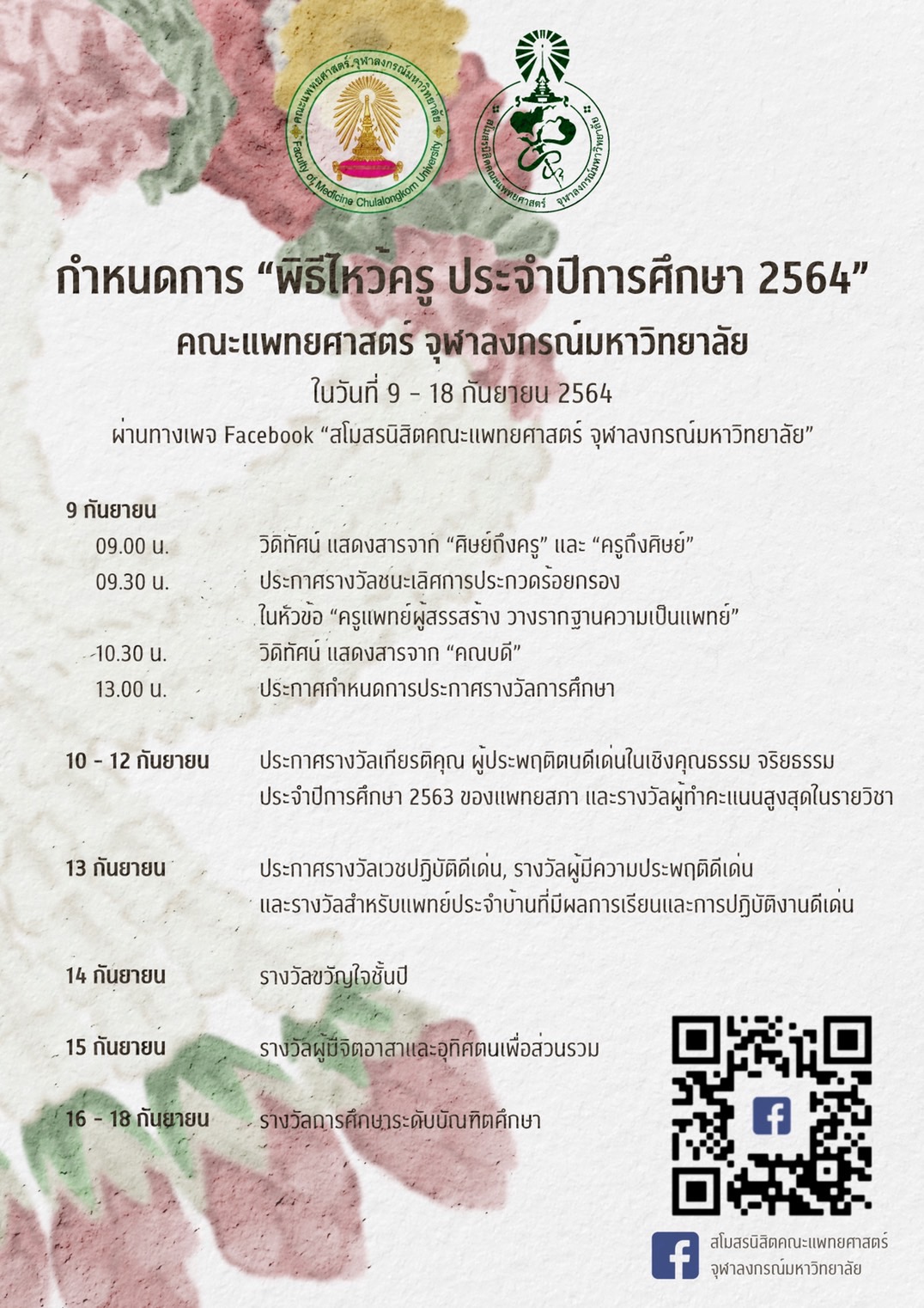 “พิธีไหว้ครู ประจำปีการศึกษา 2564” คณะแพทยศาสตร์ จุฬาลงกรณ์มหาวิทยาลัย