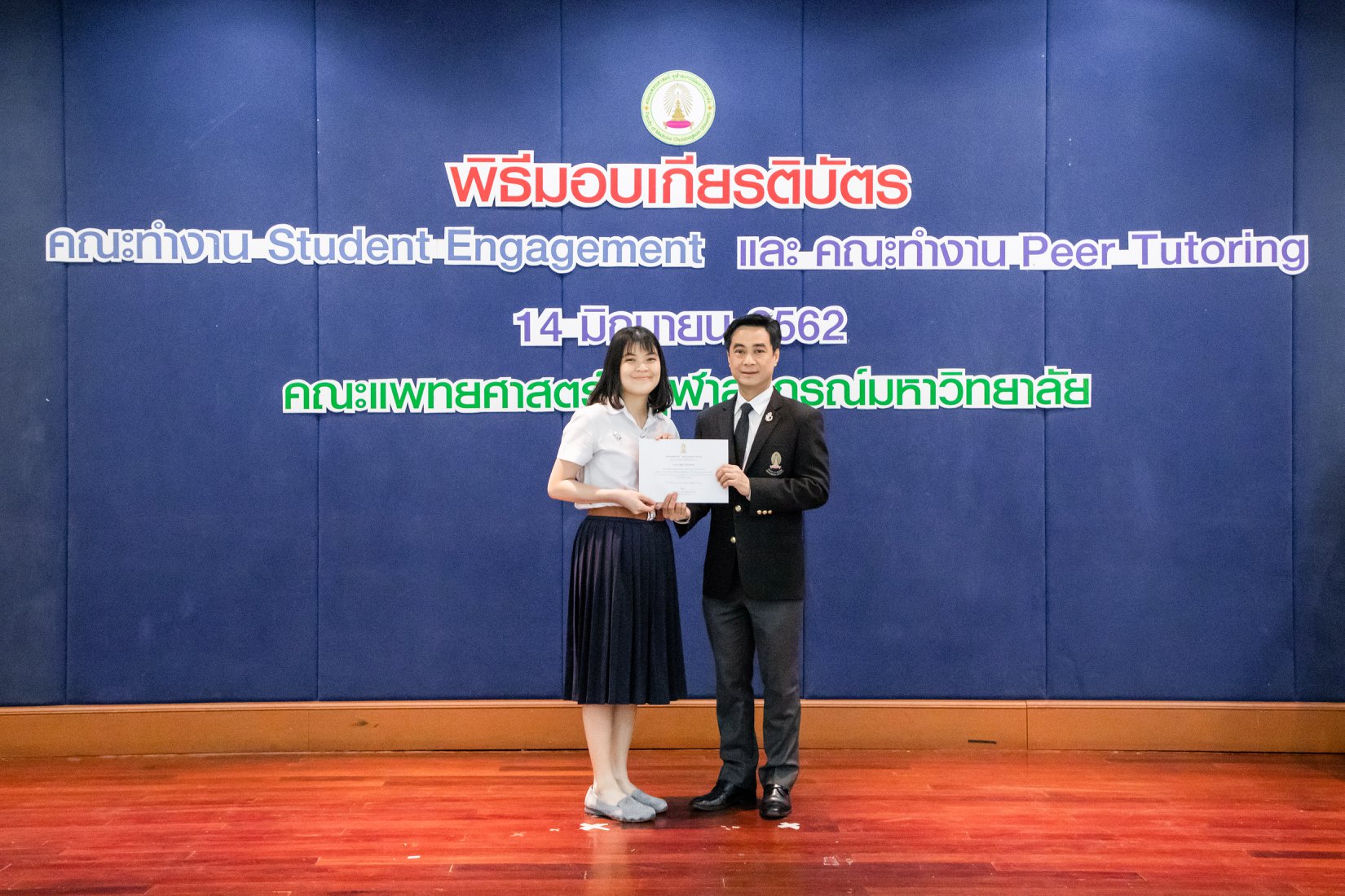 มอบเกียรติบัตรให้แก่นิสิตที่ร่วมปฏิบัติงานด้าน student engagement และ Peer tutoring