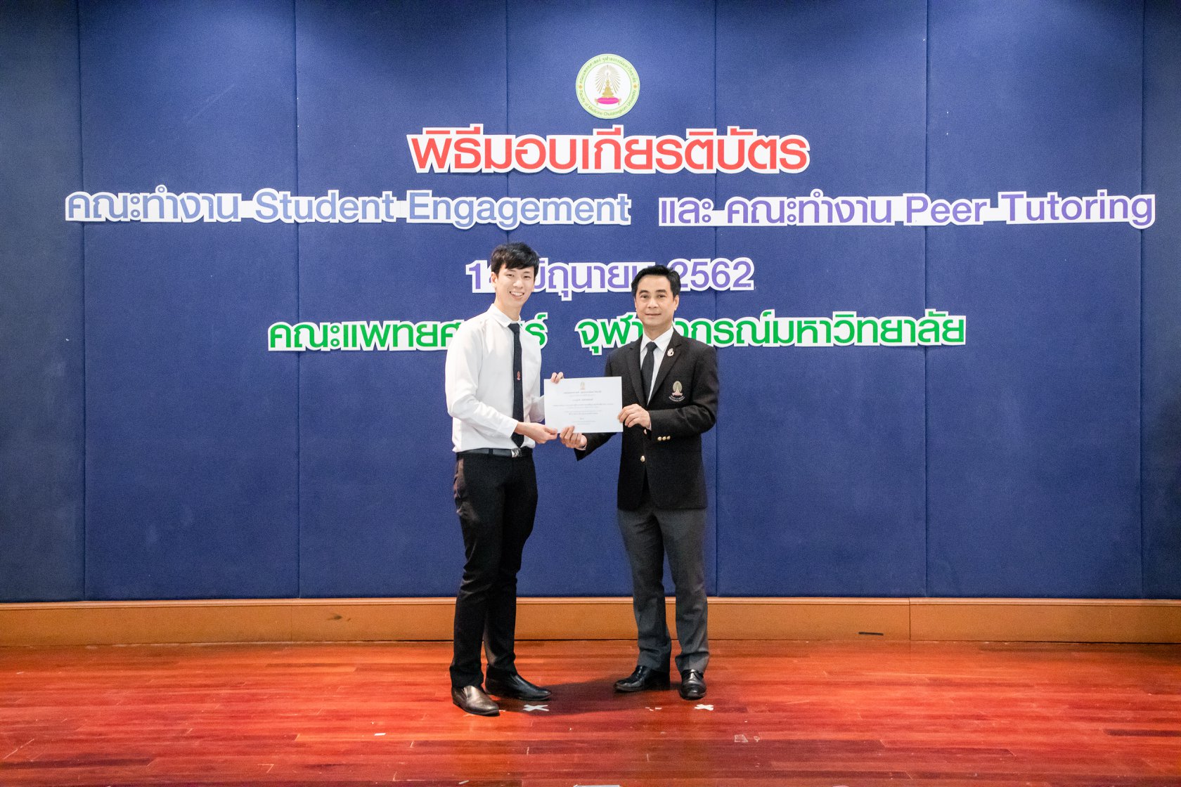 มอบเกียรติบัตรให้แก่นิสิตที่ร่วมปฏิบัติงานด้าน student engagement และ Peer tutoring