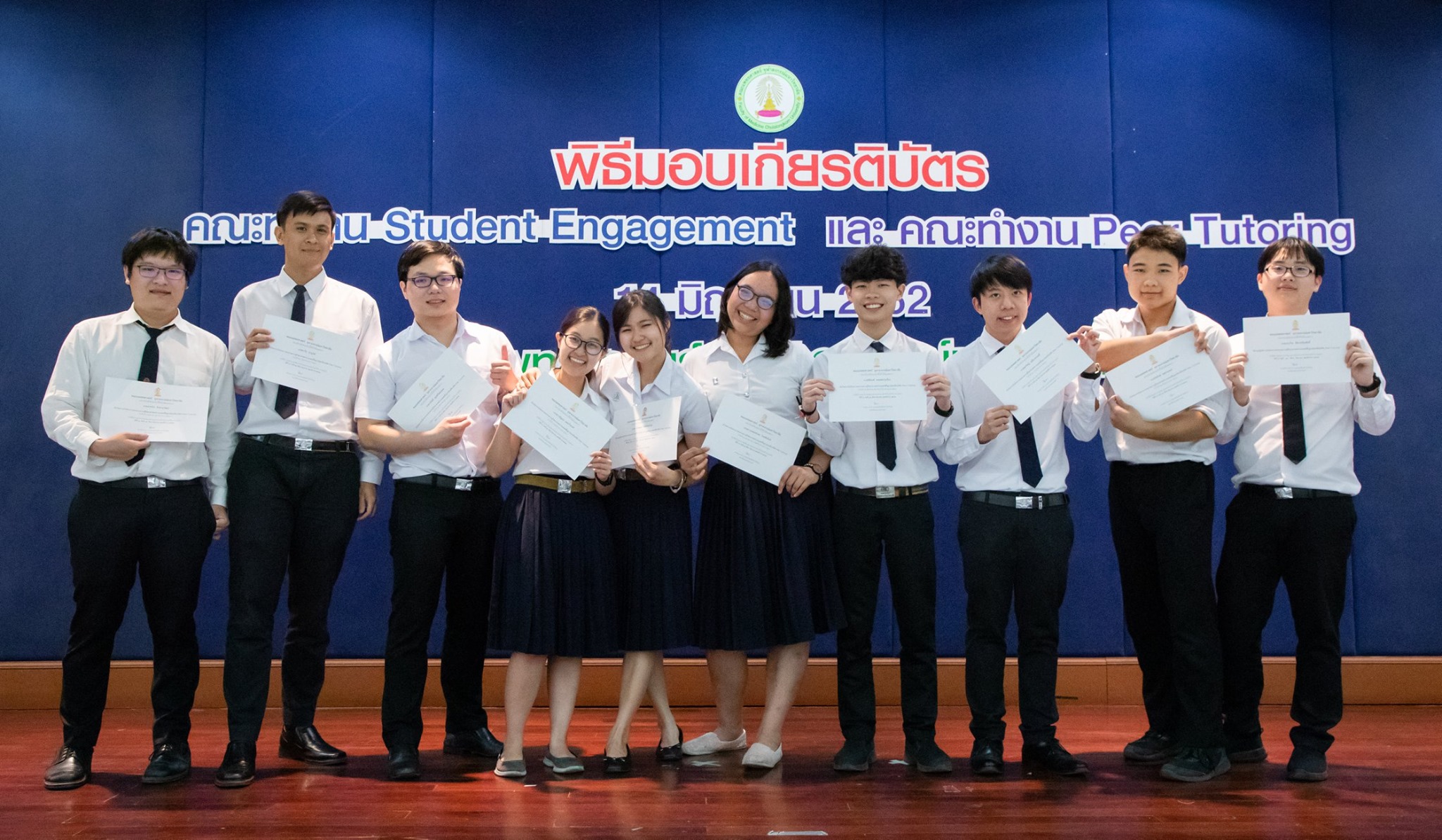 มอบเกียรติบัตรให้แก่นิสิตที่ร่วมปฏิบัติงานด้าน student engagement และ Peer tutoring