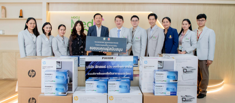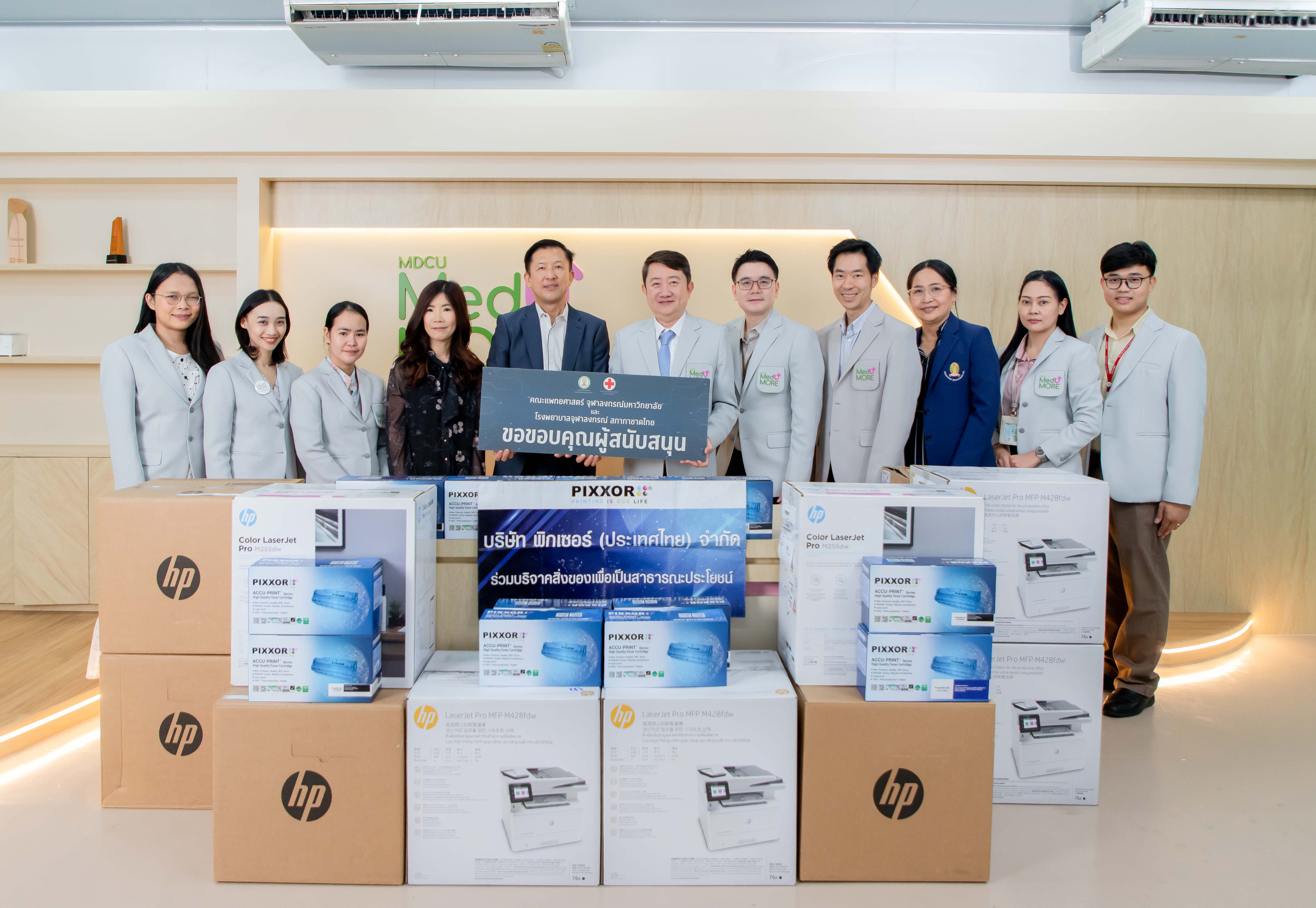 ผศ.(พิเศษ) นพ.สุรินทร์ อัศววิทูรทิพย์ ผู้ช่วยคณบดีฝ่ายบริการวิชาการ คณะแพทยศาสตร์ จุฬาลงกรณ์มหาวิทยาลัย พร้อมด้วย รศ.(พิเศษ) นพ.กำพล สุวรรณพิมลกุล ผู้ช่วยคณบดีฝ่ายบริการวิชาการ คณะแพทยศาสตร์ จุฬาลงกรณ์มหาวิทยาลัย อ.ดร.ประวีร์ เครือโชติกุล อาจารย์ประจำฝ่ายนวัตกรรมแนวบูรณาการ และเทคโนโลยีดิจิทัล คณะแพทยศาสตร์ จุฬาลงกรณ์มหาวิทยาลัย และนางสุชิรา ปัญญาสันติกุล ผู้อำนวยการฝ่ายบริหาร คณะแพทยศาสตร์ จุฬาลงกรณ์มหาวิทยาลัย รับมอบเครื่องพิมพ์หมึกเลเซอร์ จำนวน 10 เครื่อง และตลับหมึกเครื่องพิมพ์เลเซอร์ จำนวน 28 ตลับ รวมมูลค่า 429,600 บาท (สี่แสนสองหมื่นเก้าพันหกร้อยบาทถ้วน) จาก นายอดิศร อาศิรกานต์ กรรมการผู้จัดการ บริษัท พิกเซอร์ (ประเทศไทย) จำกัด ให้แก่ฝ่ายบริการวิชาการ คณะแพทยศาสตร์ จุฬาลงกรณ์มหาวิทยาลัย