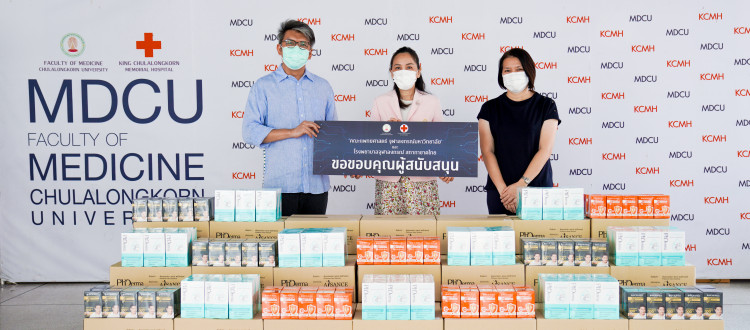 รศ.พญ.กัญญรัตน์ กรัยวิเชียร ผู้ช่วยคณบดีฝ่ายวางแผนและพัฒนา คณะแพทยศาสตร์ จุฬาลงกรณ์มหาวิทยาลัย รับมอบเจลแอลกอฮอล์ขนาดพกพา จำนวน 25,920 ซอง ผลิตภัณฑ์เสริมอาหาร วิตามินซี ซิงค์ บีคอมเพล็กซ์ จำนวน 35,280 กล่อง และผลิตภัณฑ์เสริมอาหาร เบตตากลูแคน วิตามิน ซี ดี และ อี จำนวน 35,280 กล่อง จาก นายมธี จารุมณีโรจน์ ผู้อำนวยการองค์กรและนักลงทุนสัมพันธ์ และ น.ส.มณฑิชา วงศ์น่าน ผู้จัดการฝ่ายปฏิบัติการด้านการตลาด  ผู้แทนบริษัท โรจูคิส อินเตอร์เนชั่นเนล จำกัด (มหาชน) เพื่อมอบให้แก่แพทย์ พยาบาล บุคลากรทางแพทย์ เจ้าหน้าที่ ของคณะแพทยศาสตร์ จุฬาลงกรณ์มหาวิทยาลัยและ โรงพยาบาลจุฬาลงกรณ์ สภากาชาดไทย