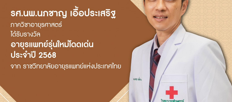 28 มิ.ย. 2025 รศ.นพ.นภชาญ เอื้อประเสริฐ ภาควิชาอายุรศาสตร์ ได้รับรางวัลอายุรแพทย์รุ่นใหม่โดดเด่น ประจำปี 2568 (เกียรติภูมิแพทย์จุฬาฯ) /Tags#mdcu, chula, chulalongkorn, medicine, คณะแพทยศาสตร์จุฬาลงกรณ์มหาวิทยาลัย, คณะแพทยศาสตร์จุฬาฯ, คณะแพทย์จุฬาฯ, เกียรติภูมิแพทย์จุฬาฯ, แพทย์จุฬาฯ กลับไปหน้าข่าวประชาสัมพันธ์
