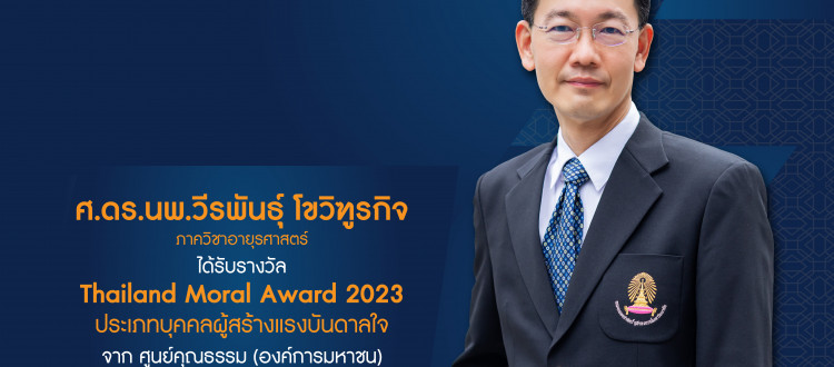 1 ต.ค. 2024 ศ.ดร.นพ.วีรพันธุ์ โขวิฑูรกิจ ภาควิชาอายุรศาสตร์ ได้รับรางวัล Thailand Moral Award 2023 (เกียรติภูมิแพทย์จุฬาฯ) /Tags#mdcu, chula, chulalongkorn, medicine, คณะแพทยศาสตร์จุฬาลงกรณ์มหาวิทยาลัย, คณะแพทยศาสตร์จุฬาฯ, คณะแพทย์จุฬาฯ, เกียรติภูมิแพทย์จุฬาฯ, แพทย์จุฬาฯ กลับไปหน้าข่าวประชาสัมพันธ์