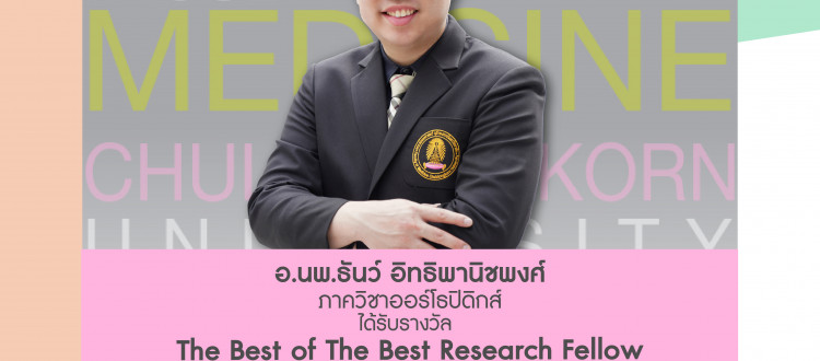 7 ก.ย. 2023 อ.นพ.ธันว์ อิทธิพานิชพงศ์ ภาควิชาออร์โธปิดิกส์ ได้รับรางวัล The Best of The Best Research Fellow / 2023 TOSSM’s Young Investigator award /Tags#mdcu, chula, chulalongkorn, medicine, คณะแพทยศาสตร์จุฬาลงกรณ์มหาวิทยาลัย, คณะแพทยศาสตร์จุฬาฯ, คณะแพทย์จุฬาฯ, แพทย์จุฬาฯ กลับไปหน้าข่าวประชาสัมพันธ์