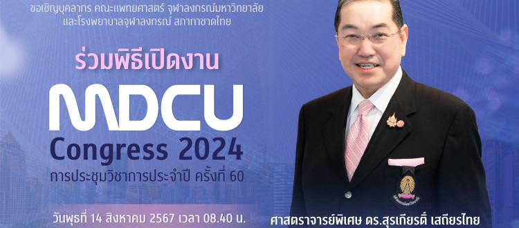 9 ส.ค. 2024 ขอเชิญบุคลากร คณะแพทยศาสตร์ จุฬาลงกรณ์มหาวิทยาลัย และโรงพยาบาลจุฬาลงกรณ์ ร่วมพิธีเปิดงาน MDCU Congress 2024 การประชุมวิชาการประจำปี ครั้งที่ 60 /Tags#mdcu, 60thMDCUCONGRESS2024, chula, chulalongkorn, MDCUCONGRESS2024, MDCUTALK, medicine, คณะแพทยศาสตร์จุฬาลงกรณ์มหาวิทยาลัย, คณะแพทยศาสตร์จุฬาฯ, คณะแพทย์จุฬาฯ, แพทย์จุฬาฯ กลับไปหน้าข่าวประชาสัมพันธ์