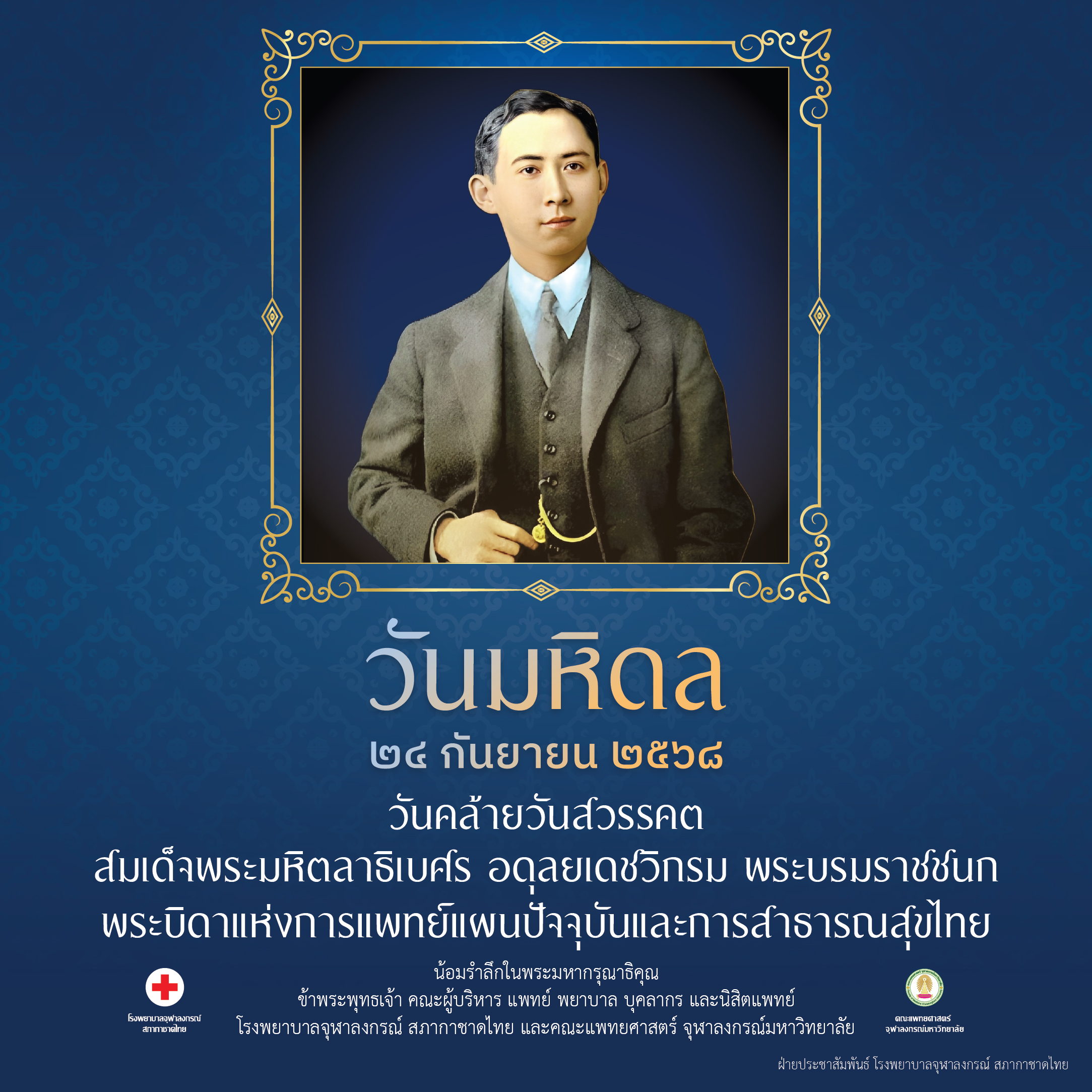 24 ก.ย. 2025 วันมหิดล ๒๔ กันยายน ๒๕๖๘ /Tags#mdcu, chula, chulalongkorn, medicine, คณะแพทยศาสตร์จุฬาลงกรณ์มหาวิทยาลัย, คณะแพทยศาสตร์จุฬาฯ, คณะแพทย์จุฬาฯ, แพทย์จุฬาฯ กลับไปหน้าข่าวประชาสัมพันธ์