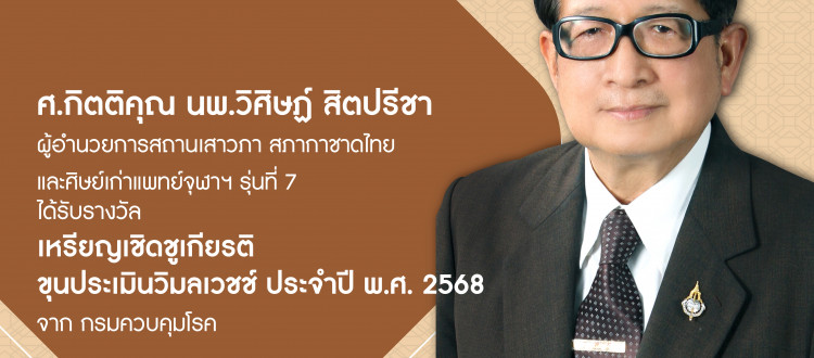 28 มิ.ย. 2025 ศ.กิตติคุณ นพ.วิศิษฏ์ สิตปรีชา ผู้อำนวยการสถานเสาวภา สภากาชาดไทย และศิษย์เก่าแพทย์จุฬาฯ รุ่นที่ 7 ได้รับรางวัลเหรียญเชิดชูเกียรติขุนประเมินวิมลเวชช์ ประจำปี พ.ศ. 2568 /Tags#mdcu, chula, chulalongkorn, medicine, คณะแพทยศาสตร์จุฬาลงกรณ์มหาวิทยาลัย, คณะแพทยศาสตร์จุฬาฯ, คณะแพทย์จุฬาฯ, เกียรติภูมิแพทย์จุฬาฯ, แพทย์จุฬาฯ กลับไปหน้าข่าวประชาสัมพันธ์