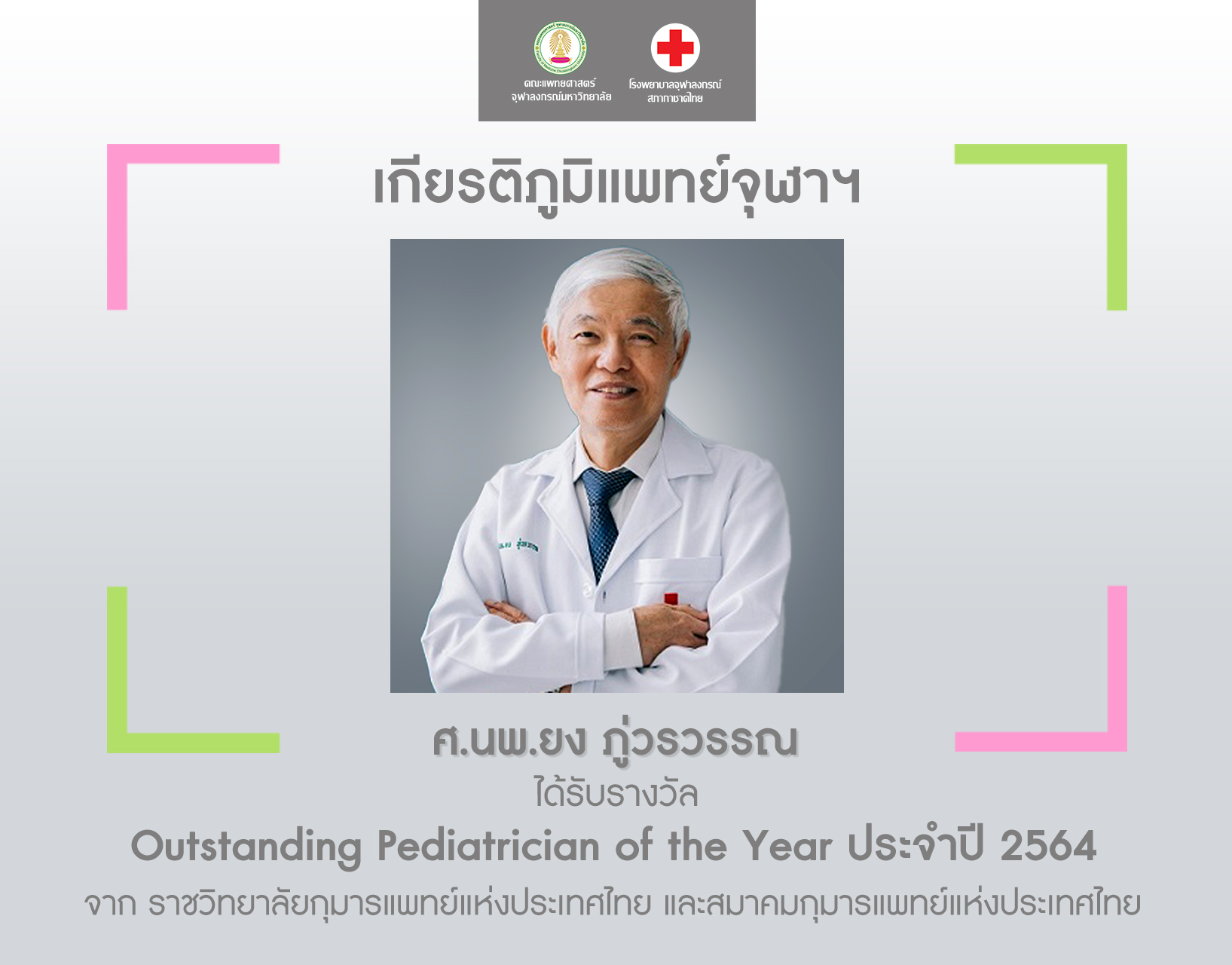 8 ต.ค. 2021 ศ.นพ.ยง ภู่วรวรรณ ได้รับรางวัล Outstanding Pediatrician of the Year ประจำปี 2564 จาก ราชวิทยาลัยกุมารแพทย์แห่งประเทศไทย และสมาคมกุมารแพทย์แห่งประเทศไทย (เกียรติภูมิแพททย์ จุฬาฯ) /Tags#mdcu, chula, chulalongkorn, medicine, คณะแพทยศาสตร์จุฬาลงกรณ์มหาวิทยาลัย, คณะแพทยศาสตร์จุฬาฯ, คณะแพทย์จุฬาฯ, เกียรติภูมิแพทย์จุฬาฯ, แพทย์จุฬาฯ กลับไปหน้าข่าวประชาสัมพันธ์