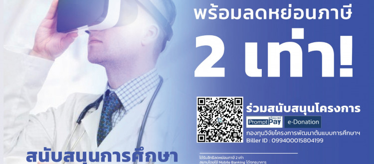 ร่วมบริจาคเงิน เพื่อสมทบทุน โครงการขอรับเงินบริจาคเพื่อการวิจัยทางด้านโครงการการพัฒนาต้นแบบการศึกษาร่วมกันระหว่างสหสาขาวิชาชีพทางการแพทย์ (พร้อมลดหย่อนภาษี 2 เท่า)