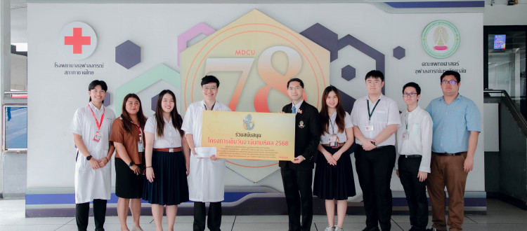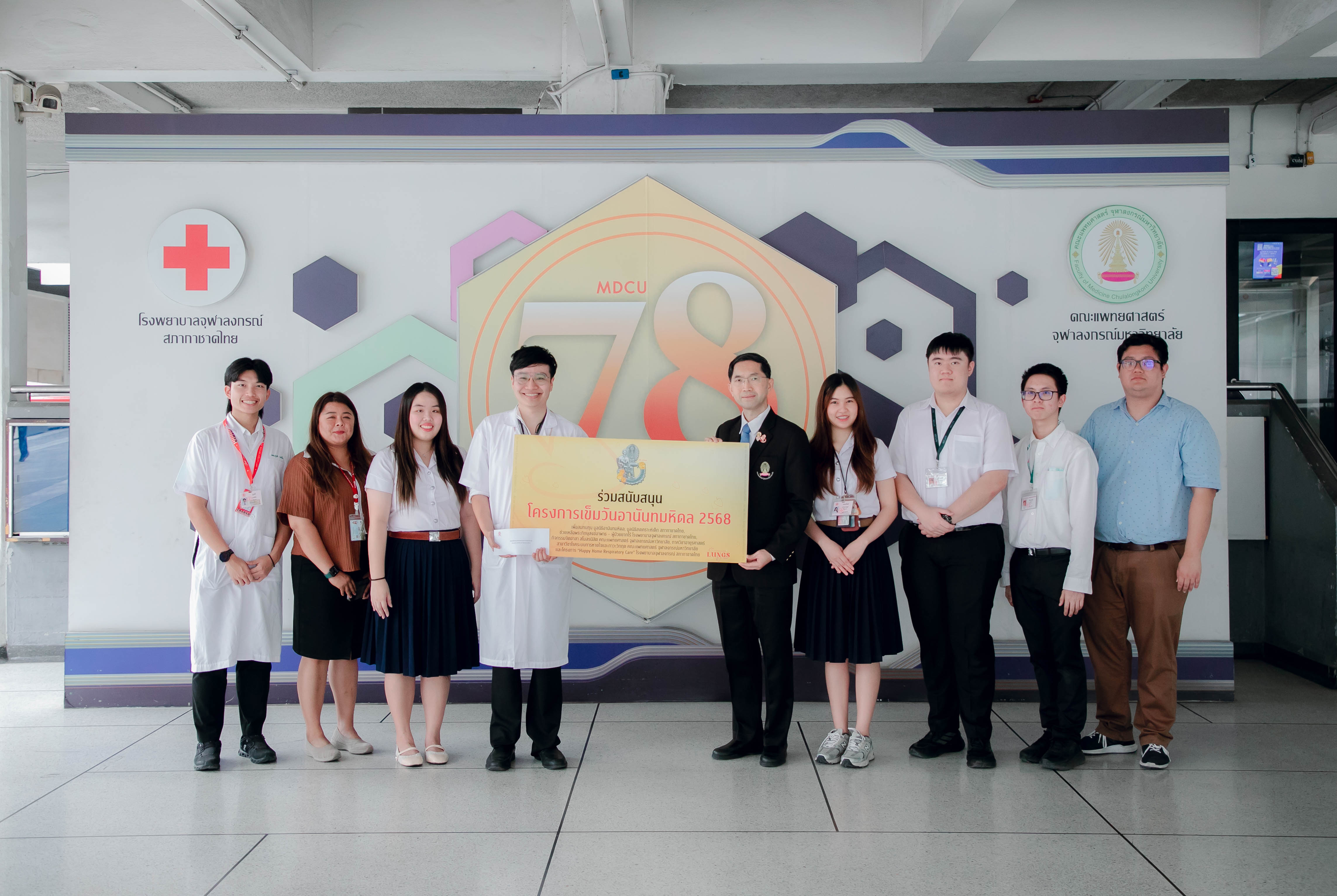 ศ.ดร.นพ.สิทธิศักดิ์ หรรษาเวก รองคณบดีฝ่ายกิจการนิสิต คณะแพทยศาสตร์ จุฬาลงกรณ์มหาวิทยาลัย พร้อมด้วย นสพ.กนกรักษ์ บำรุงราษฎร์ ประธานโครงการเข็มวันอานันทมหิดล ประจำปี 2568 และคณะกรรมการโครงการฯ ร่วมมอบเงินจำนวน 200,000 บาท (สองแสนบาทถ้วน) เพื่อสมทบทุนให้กิจกรรมจิตอาสา สโมสรนิสิตคณะเเพทยศาสตร์ จุฬาฯ โดยมี นสพ.คงปพน จิรธรรมธนากุล นายกสโมสรนิสิตคณะแพทยศาสตร์ จุฬาฯ ประจำปี 2568 ร่วมรับมอบ