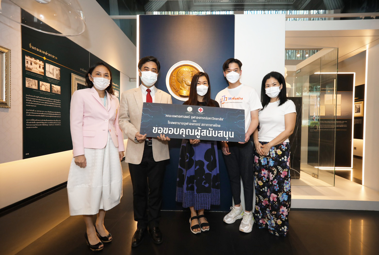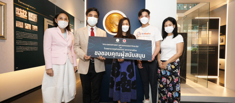 ศ.นพ.สุทธิพงศ์ วัชรสินธุ คณบดี คณะแพทยศาสตร์ จุฬาลงกรณ์มหาวิทยาลัย และรศ.พญ.กัญญรัตน์ กรัยวิเชียร ผู้ช่วยคณบดีฝ่ายวางแผนและพัฒนา คณะแพทยศาสตร์ จุฬาลงกรณ์มหาวิทยาลัย รับมอบเงิน จำนวน 12,000 บาท (หนึ่งหมื่นสองพันบาทถ้วน) จาก น.ส.วรสุดา ชุมสาย ณ อยุธยา พร้อมด้วย น.ส.อาจ์ลดา ชุมสาย ณ อยุธยา และนายพิชญะ พิชัยรณรงค์สงคราม ผู้แทนศิลปิน ๒ รัชสมัย เพื่อสนับสนุนกองทุนการวิจัยและพัฒนาวัคซีน คณะแพทยศาสตร์ จุฬาลงกรณ์มหาวิทยาลัย