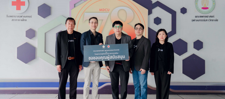อ.นพ.ไตรรักษ์ พิสิษฐ์กุล หัวหน้ากลุ่มวิจัยพัฒนาแอนติบอดีเพื่อการรักษามะเร็ง ศูนย์ความเป็นเลิศด้านภูมิคุ้มกันบำบัดมะเร็ง และนักวิจัยพันธมิตร ฝ่ายวิจัย คณะแพทยศาสตร์ จุฬาลงกรณ์มหาวิทยาลัย รับมอบเงิน จำนวน 2,500,000 บาท (สองล้านห้าแสนบาทถ้วน) จากกิจกรรม VSTECS GOLF CHARITY 2025 จาก นายสมศักดิ์ เพ็ชรทวีพรเดช ประธานเจ้าหน้าที่บริหาร บริษัท วีเอสที อีซีเอส (ประเทศไทย) จำกัด และบริษัทคู่ค้า เพื่อสมทบกองทุนภูมิคุ้มกันบำบัดมะเร็งจุฬาฯ สนับสนุนการพัฒนาการรักษาโรคมะเร็งด้วยภูมิคุ้มกันของผู้ป่วยเอง และสนับสนุนการวิจัยของศูนย์ความเป็นเลิศด้านภูมิคุ้มกันบำบัดมะเร็ง คณะแพทยศาสตร์ จุฬาลงกรณ์มหาวิทยาลัย และโรงพยาบาลจุฬาลงกรณ์ สภากาชาดไทย