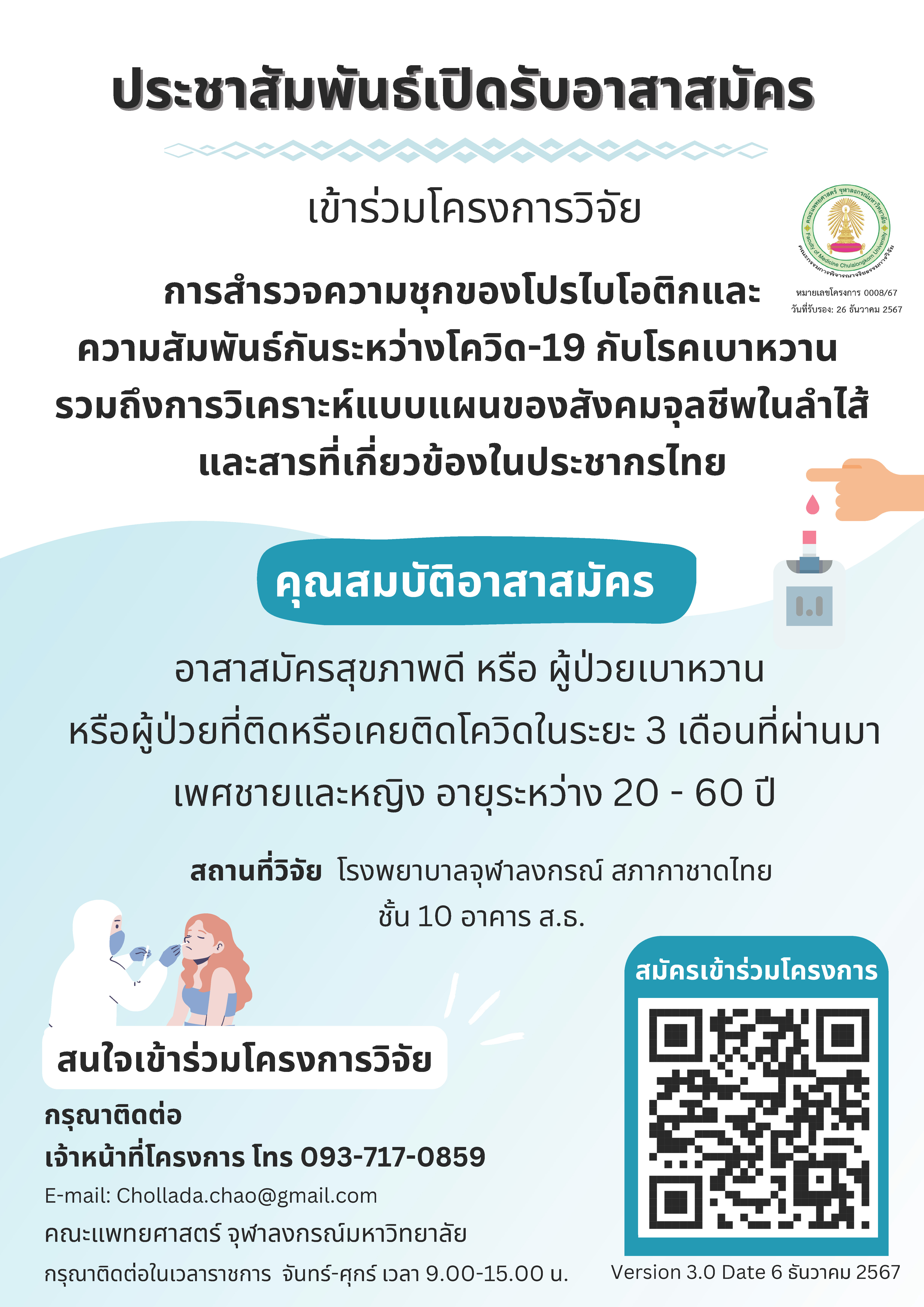 16 มิ.ย. 2025 📣ประกาศรับสมัครอาสาสมัครโครงการวิจัยทางการแพทย์ /Tags#mdcu, chula, chulalongkorn, medicine, คณะแพทยศาสตร์จุฬาลงกรณ์มหาวิทยาลัย, คณะแพทยศาสตร์จุฬาฯ, คณะแพทย์จุฬาฯ, แพทย์จุฬาฯ กลับไปหน้าข่าวประชาสัมพันธ์