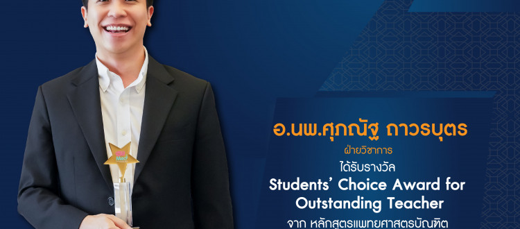 3 ก.ค. 2024 อ.นพ.ศุภณัฐ ถาวรบุตร ฝ่ายวิชาการ ได้รับรางวัล Students’ Choice Award for Outstanding Teacher (เกียรติภูมิแพทย์จุฬาฯ) /Tags#mdcu, chula, chulalongkorn, cumedi, medicine, คณะแพทยศาสตร์จุฬาลงกรณ์มหาวิทยาลัย, คณะแพทยศาสตร์จุฬาฯ, คณะแพทย์จุฬาฯ, แพทย์จุฬานานาชาติ, แพทย์จุฬาฯ กลับไปหน้าข่าวประชาสัมพันธ์
