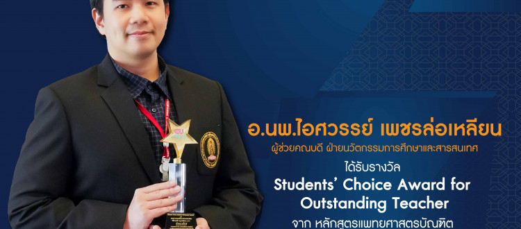 11 ก.ค. 2024 อ.นพ.ไอศวรรย์ เพชรล่อเหลียน ผู้ช่วยคณบดี ฝ่ายนวัตกรรมการศึกษาและสารสนเทศ ได้รับรางวัล Students’ Choice Award for Outstanding Teacher (เกียรติภูมิแพทย์จุฬาฯ) /Tags#mdcu, chula, chulalongkorn, medicine, คณะแพทยศาสตร์จุฬาลงกรณ์มหาวิทยาลัย, คณะแพทยศาสตร์จุฬาฯ, คณะแพทย์จุฬาฯ, เกียรติภูมิแพทย์จุฬาฯ, แพทย์จุฬาฯ กลับไปหน้าข่าวประชาสัมพันธ์