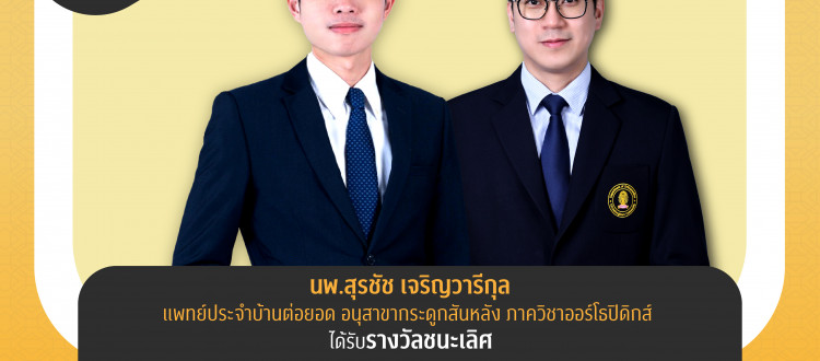 3 ก.พ. 2026 นพ.สุรชัช เจริญวารีกุล แพทย์ประจำบ้านต่อยอด อนุสาขากระดูกสันหลัง ภาควิชาออร์โธปิดิกส์ ได้รับรางวัลชนะเลิศ Best paper contest (เกียรติภูมิแพทย์จุฬาฯ) /Tags#mdcu, chula, chulalongkorn, medicine, คณะแพทยศาสตร์จุฬาลงกรณ์มหาวิทยาลัย, คณะแพทยศาสตร์จุฬาฯ, คณะแพทย์จุฬาฯ, เกียรติภูมิแพทย์จุฬาฯ, แพทย์จุฬาฯ กลับไปหน้าข่าวประชาสัมพันธ์