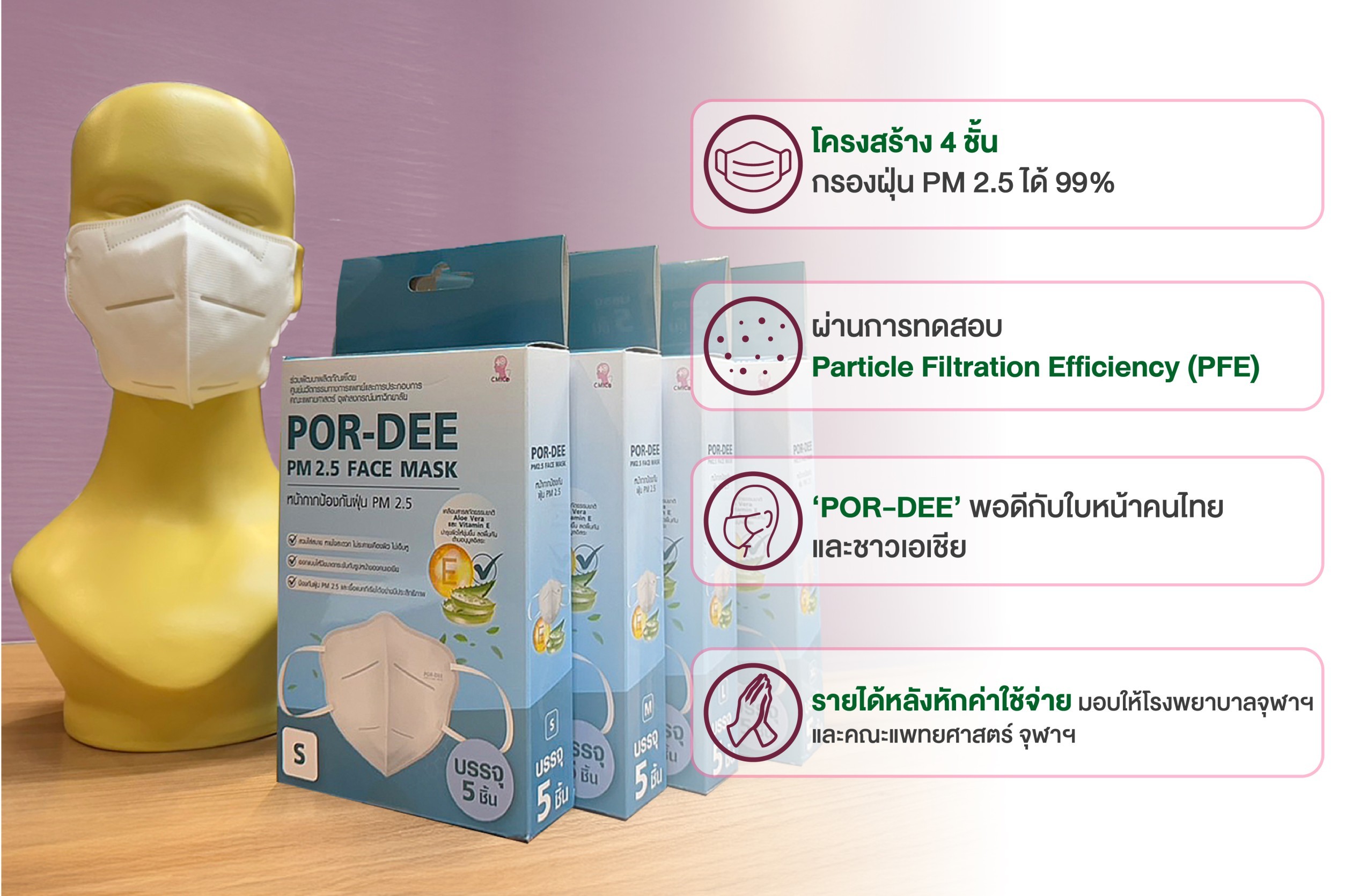 ฝุ่น PM 2.5 วิกฤติ! แพทยศาสตร์ จุฬาฯ – ซีพี เปิดตัวหน้ากาก “POR-DEE” นวัตกรรมเพื่อสุขภาพ รายได้หลังหักค่าใช้จ่ายบริจาคให้โรงพยาบาลจุฬาฯและคณะแพทยศาสตร์ จุฬาฯ