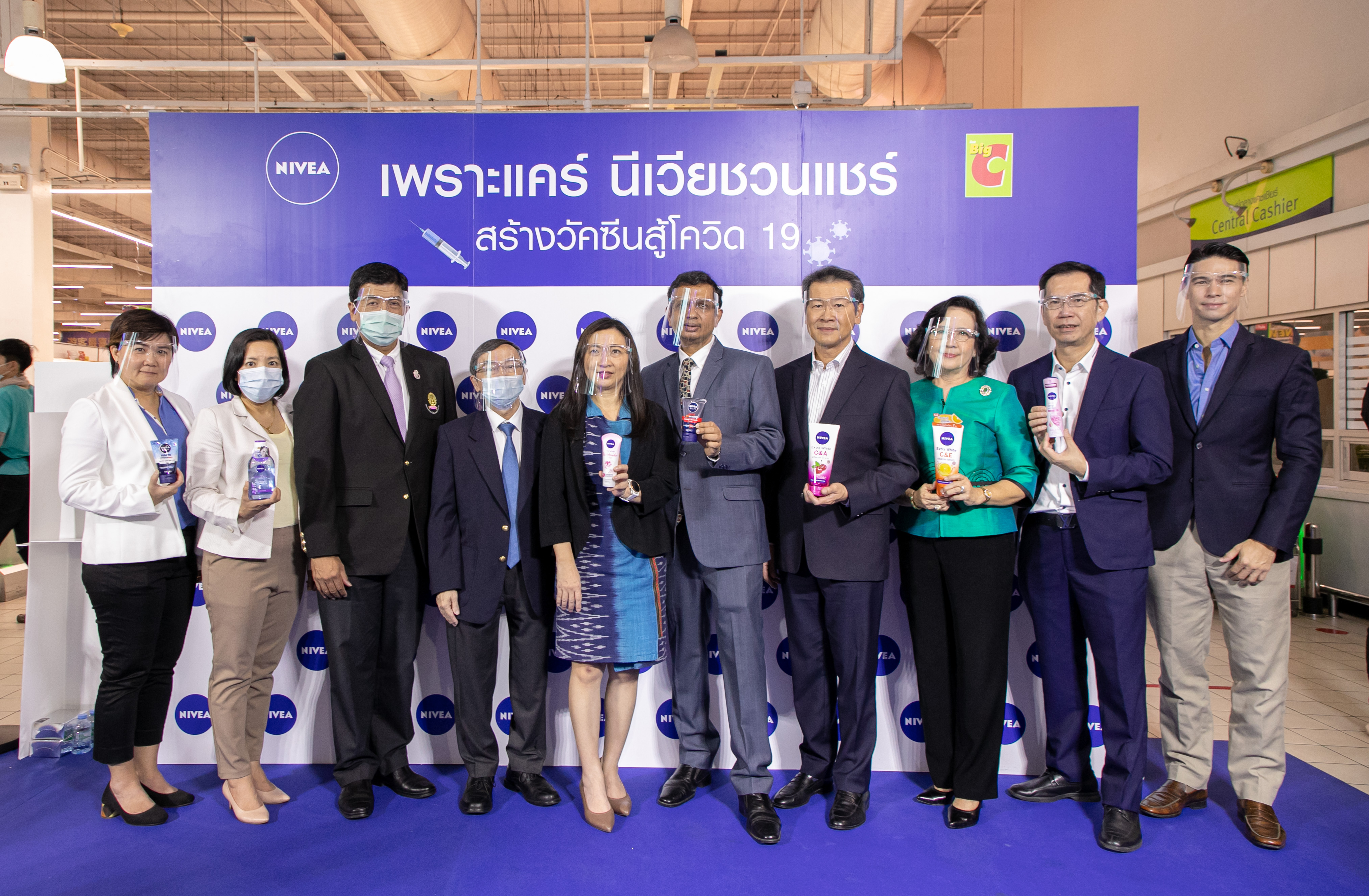 ศ.นพ.เกียรติ รักษ์รุ่งธรรม ผู้อำนวยการบริหารโครงการพัฒนาวัคซีนโควิด-19 ศูนย์วิจัยวัคซีน และ รศ.นพ.ฉันชาย สิทธิพันธุ์ รองคณบดีฝ่ายวางแผนและพัฒนา คณะแพทยศาสตร์ จุฬาลงกรณ์มหาวิทยาลัย ไปร่วมงานแถลงข่าว โครงการ “เพราะแคร์ นีเวีย ชวนแชร์ สร้างวัคซีนสู้โควิด 19” โดยทางบริษัท ไบเออร์สด๊อรฟ (ประเทศไทย) ได้จัดขึ้นเพื่อประชาสัมพันธ์ และสร้างการรับรู้ในวงกว้างถึงโครงการที่จัดขึ้น เพื่อนำรายได้จากการจำหน่ายผลิตภัณฑ์นีเวีย ตั้งแต่วันที่ 1 ตุลาคม – 25 พฤศจิกายน 2563 ที่บิ๊กซีทุกสาขาทั่วประเทศ ในช่องทางการขายปกติ โดยหักรายได้ชิ้นละ 1 บาท เพื่อสมทบกองทุนการวิจัยและพัฒนาวัคซีน จุฬาฯ ในการวิจัยและพัฒนาวัคซีนป้องกันไวรัสโควิด-19