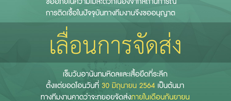 27 ก.ค. 2021 ขออภัยในความไม่สะดวกเนื่องจากสถานการณ์การติดเชื้อในปัจจุบันทางทีมงานจึงขออนุญาต “เลื่อนการจัดส่ง” เข็มวันอานันทมหิดลและเสื้อยืดที่ระลึก /Tags#mdcu, ANANDAY2021, chula, chulalongkorn, Covid19, medicine, คณะแพทยศาสตร์จุฬาลงกรณ์มหาวิทยาลัย, คณะแพทยศาสตร์จุฬาฯ, คณะแพทย์จุฬาฯ, น้ำใจสร้างกุศล One Shot SAVES Lives หนึ่งเข็ม ... เพื่ออีกเข็ม, แพทย์จุฬาฯ กลับไปหน้าข่าวประชาสัมพันธ์
