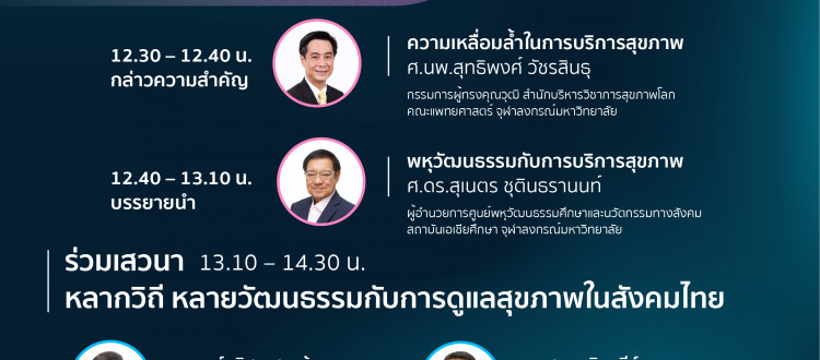 21 เม.ย. 2023 ขอเชิญร่วมงานเสวนาทางวิชาการ หัวข้อ ‘เข้าใจ-เข้าถึงพหุวัฒนธรรม ลดความเหลื่อมล้ำในการบริการสุขภาพ ครั้งที่ 1 /Tags#mdcu, chula, chulalongkorn, medicine, คณะแพทยศาสตร์จุฬาลงกรณ์มหาวิทยาลัย, คณะแพทยศาสตร์จุฬาฯ, คณะแพทย์จุฬาฯ, แพทย์จุฬาฯ กลับไปหน้าข่าวประชาสัมพันธ์