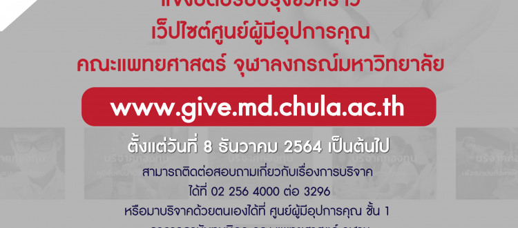 8 ธ.ค. 2021 แจ้งปิดปรับปรุงชั่วคราวเว็บไซต์ศูนย์ผู้มีอุปการคุณ คณะแพทยศาสตร์ จุฬาลงกรณ์มหาวิทยาลัย ตั้งแต่วันที่ 8 ธันวาคม 2564 เป็นต้นไป /Tags#mdcu, chula, chulalongkorn, medicine, คณะแพทยศาสตร์จุฬาลงกรณ์มหาวิทยาลัย, คณะแพทยศาสตร์จุฬาฯ, คณะแพทย์จุฬาฯ, แพทย์จุฬาฯ กลับไปหน้าข่าวประชาสัมพันธ์