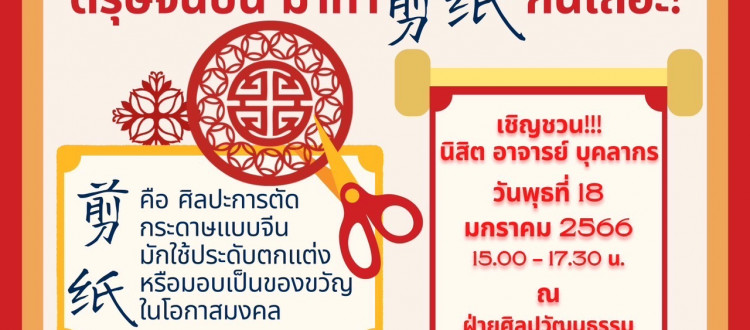 ♂️เชิญชวนนิสิตแพทย์ อาจารย์ และบุคลากรทุกท่าน ร่วมกิจกรรมตัดกระดาษมงคลต้อนรับเทศกาลตรุษจีน ปีเถาะ 2023 เสริมความมู ความมงคลให้แก่ชีวิตในปีใหม่นี้!