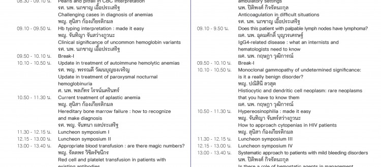 จัดโดย สาขาวิชาโลหิตวิทยา ภาควิชาอายุรศาสตร์ คณะแพทยศาสตร์ จุฬาลงกรณ์มหาวิทยาลัย
