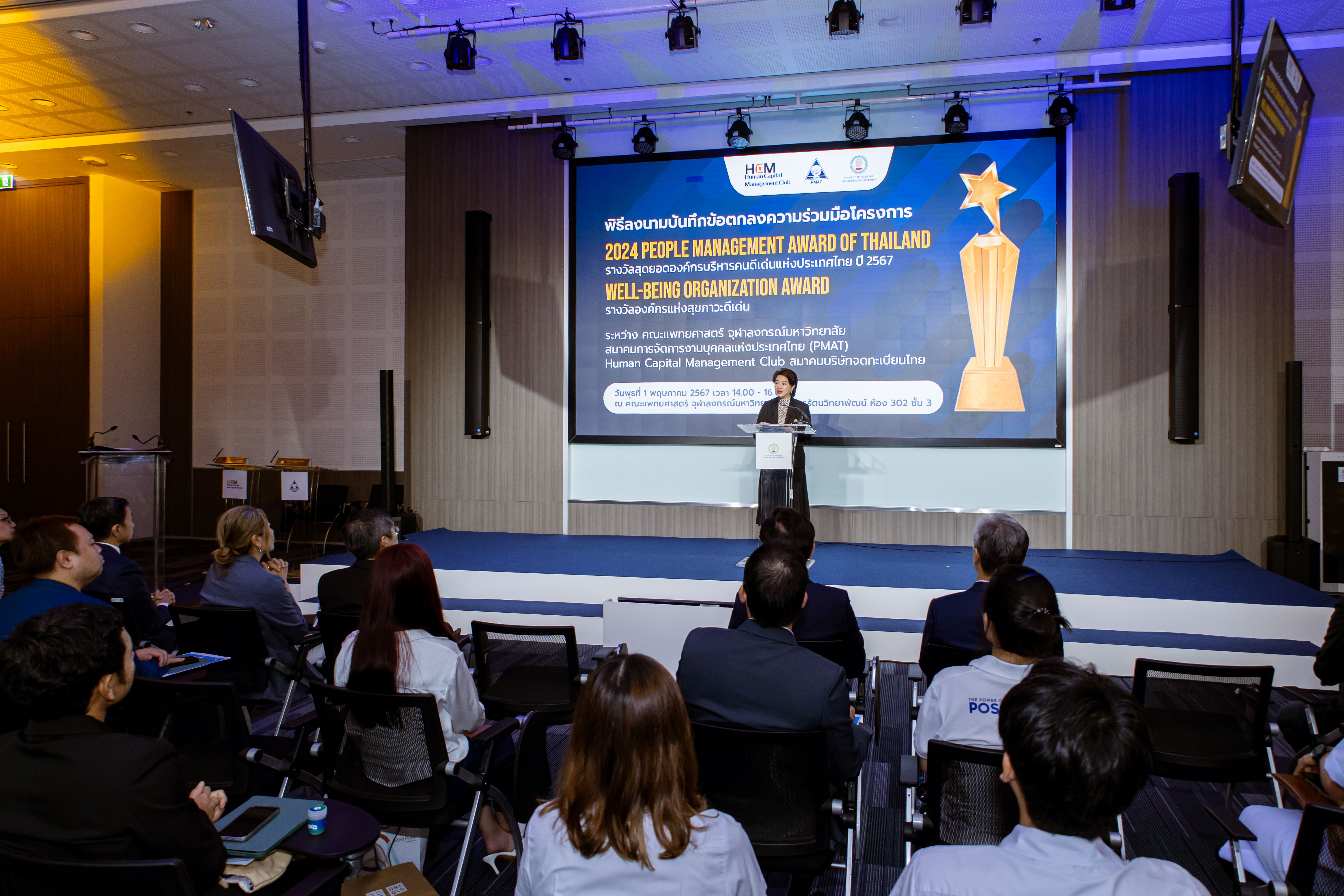 พิธีลงนามบันทึกข้อตกลงความร่วมมือระหว่าง สมาคมการจัดการงานบุคคลแห่งประเทศไทย (PMAT) Human Capital Management Club สมาคมบริษัทจดทะเบียนไทย และคณะแพทยศาสตร์ จุฬาลงกรณ์มหาวิทยาลัย เพื่อดำเนินการโครงการ 2024 People Management Award of Thailand 2567 และ Well-being Organization Award และการเสวนาวิชาการ “Organizational Well-being Management: การจัดการสุขภาวะองค์กร เพื่อ คน องค์กร และความยั่งยืน”