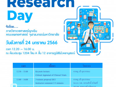 โครงการสนับสนุนการจัดกิจกรรม Research Day จัดโดย ภาควิชาเวชศาสตร์ฉุกเฉิน คณะแพทยศาสตร์ จุฬาลงกรณ์มหาวิทยาลัย Posted on09 ม.ค. 2023Tags#mdcu, chula, chulalongkorn, medicine, คณะแพทยศาสตร์จุฬาลงกรณ์มหาวิทยาลัย, คณะแพทยศาสตร์จุฬาฯ, คณะแพทย์จุฬาฯ, แพทย์จุฬาฯ