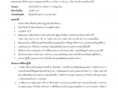 ประกาศรับสมัครงาน (ปิดรับสมัคร 31 มกราคม 2567) คณะแพทยศาสตร์ จุฬาลงกรณ์มหาวิทยาลัย เปิดรับสมัครบุคคลเพื่อสอบคัดเลือกเป็นพนักงานคณะแพทยศาสตร์ Posted on10 ม.ค. 2024Tags#mdcu, chula, chulalongkorn, medicine, คณะแพทยศาสตร์จุฬาลงกรณ์มหาวิทยาลัย, คณะแพทยศาสตร์จุฬาฯ, คณะแพทย์จุฬาฯ, แพทย์จุฬาฯ