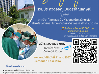 ขอเชิญชวนแพทย์ บุคลากร และผู้สนใจประกวดออกแบบตราสัญลักษณ์ (Logo) ภาควิชาศัลยศาสตร์ คณะแพทยศาสตร์ จุฬาลงกรณ์มหาวิทยาลัย และฝ่ายศัลยศาสตร์ โรงพยาบาลจุฬาลงกรณ์ สภากาชาดไทย Posted on31 ก.ค. 2024