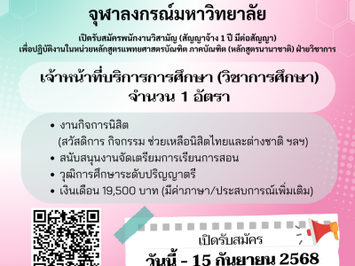 คณะแพทยศาสตร์ จุฬาลงกรณ์มหาวิทยาลัย รับสมัครบุคคลเข้ารับการคัดเลือกเป็น “พนักงานวิสามัญ” ตำแหน่ง “เจ้าหน้าที่บริการการศึกษา (วิชาการศึกษา)” จำนวน 1 อัตรา Posted on03 ก.ย. 2025Tagscumedi, jobs, คณะแพทยศาสตร์จุฬาลงกรณ์มหาวิทยาลัย, คณะแพทยศาสตร์จุฬาฯ, คณะแพทย์จุฬาฯ, สมัครงาน, หางาน, แพทย์จุฬาฯ 💰 19,500 บาท + ค่... Read More