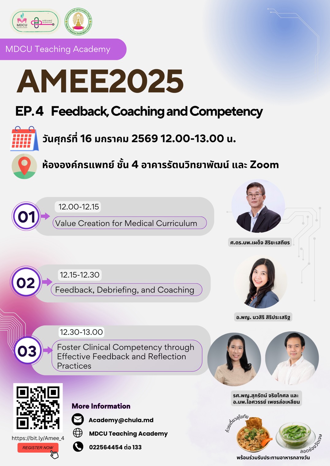 👨‍ มาร่วมรับฟังการแลกเปลี่ยนประสบการณ์จากงานประชุมด้านแพทยศาสตรศึกษา AMEE2025 และรับฟังไอเดียที่อาจารย์จะนำมาปรับใช้ เพื่อพัฒนาการศึกษา การสอน ผู้เรียนและหลักสูตร ในคณะแพทยศาสตร์ จุฬาฯ ให้ดียิ่งขึ้นต่อไป (EP.4 จะเป็น last episode)