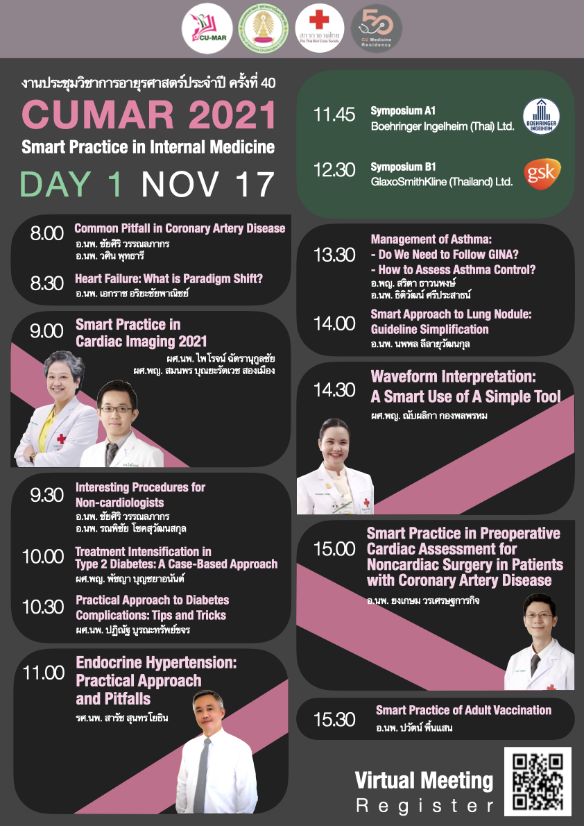 งานประชุมวิชาการอายุรศาสตร์ประจำปี ครั้งที่ 40 CUMAR 2021: Smart Practice in Internal Medicine 2021 (Virtual Meeting)