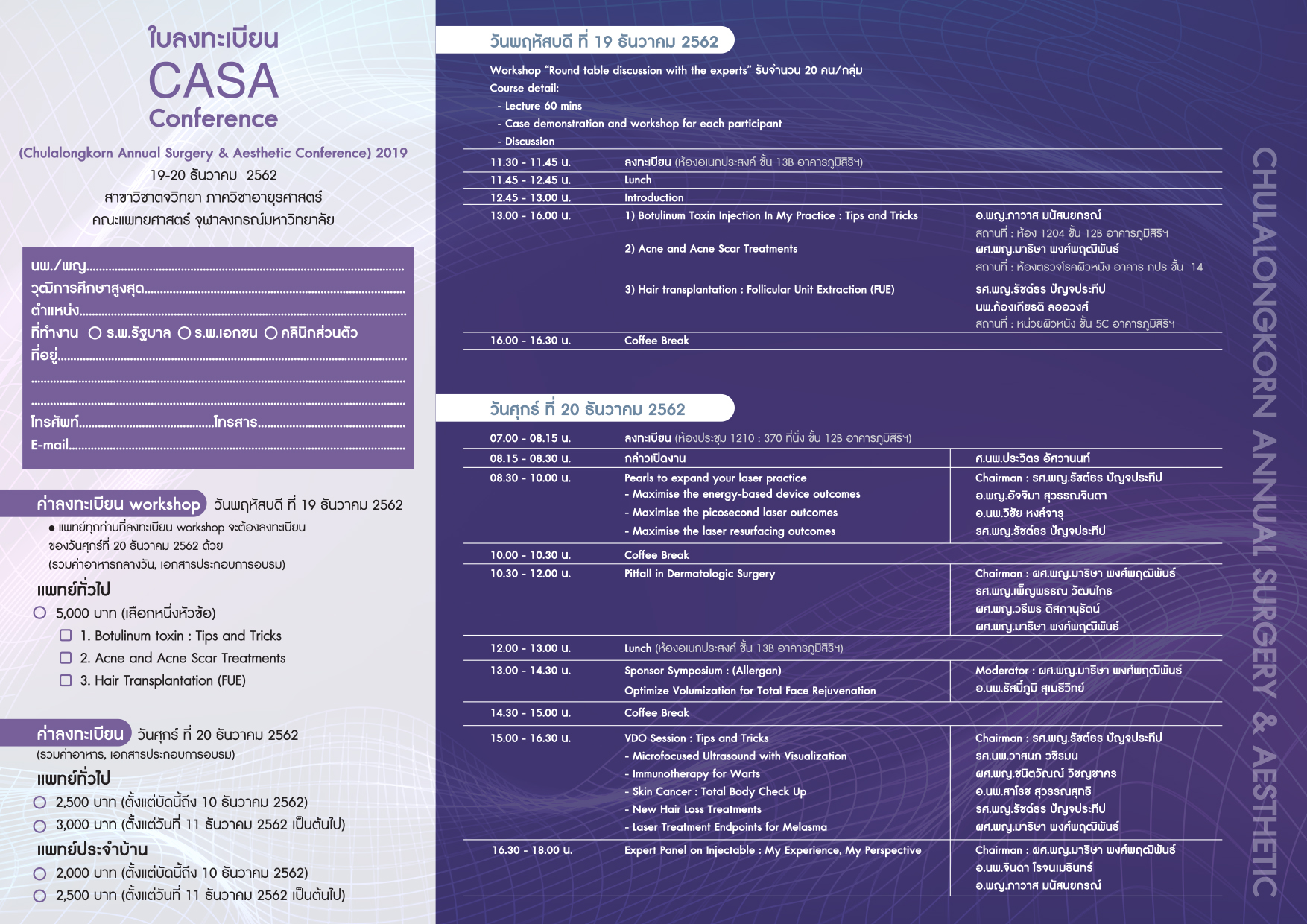 CASA Conference ( Chulalongkorn Annual Surgery & Aesthetic Conference ) 2019