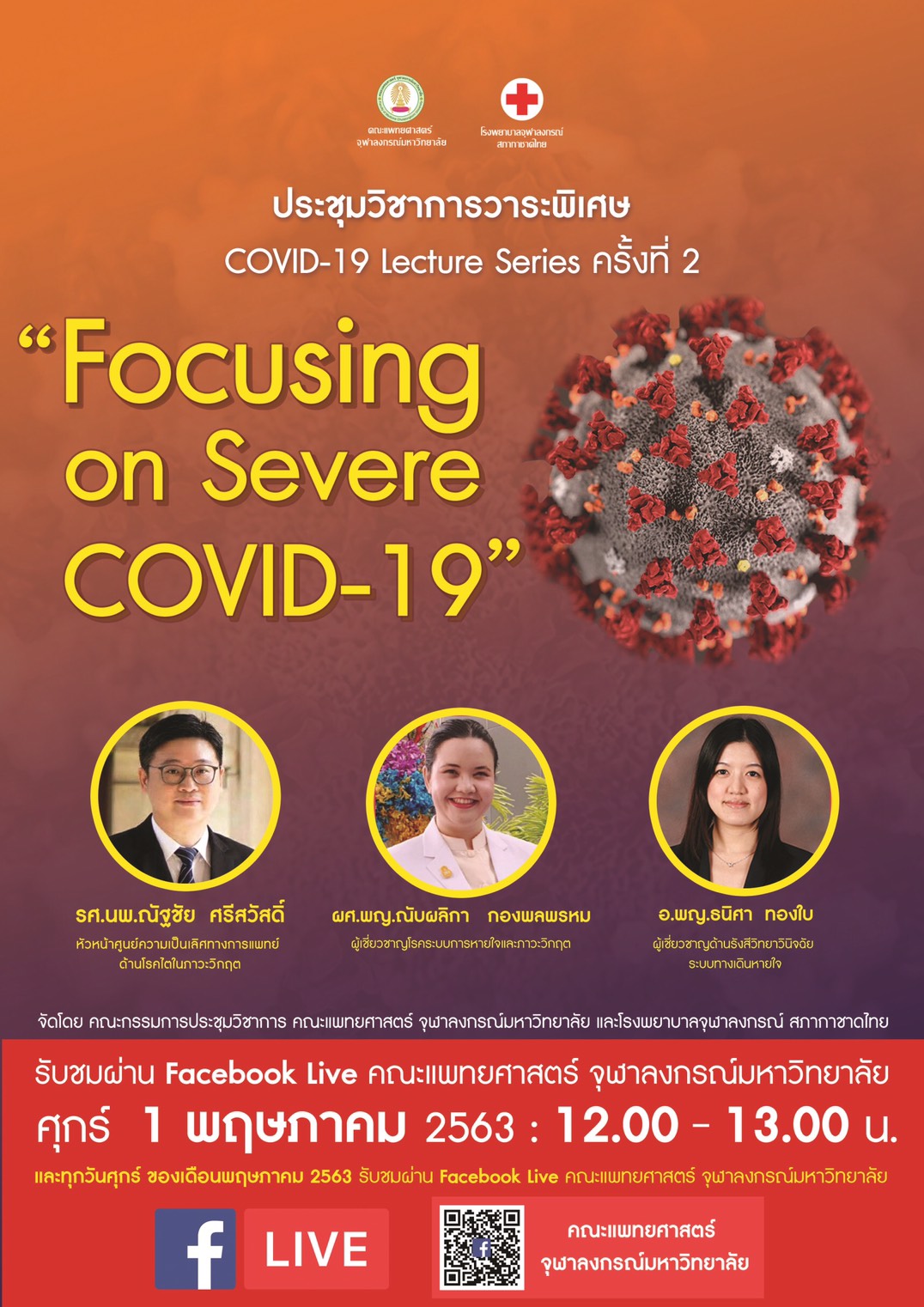 may, 2020 งานประชุมวิชาการวาระพิเศษ COVID-19 Lecture Series ครั้งที่ 2 01may12:00 pm1:00 pmงานประชุมวิชาการวาระพิเศษ COVID-19 Lecture Series ครั้งที่ 2 Focusing on Severe COVID-19 Event Details🔴 สามารถรับชมผ่าน Facebook Live คณะแพทยศาสตร์ จุฬาลงกรณ์มหาวิทยาลัย Event Details 🔴 สามารถรับชมผ่าน Facebook Live คณะแพทยศาสตร์ จุฬาลงกรณ์มหาวิทยาลัย Time (Friday) 12:00 pm - 1:00 pm Locationห้องประชุมศูนย์เทคโนโลยีการศึกษาแพทยศาสตร์ ชั้น 5 อาคารอานันทมหิดล CalendarGoogleCal